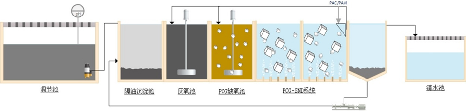 1,應(yīng)用PCG-S型載體強(qiáng)化特定污染物質(zhì)的生化反應(yīng)轉(zhuǎn)化及去除。